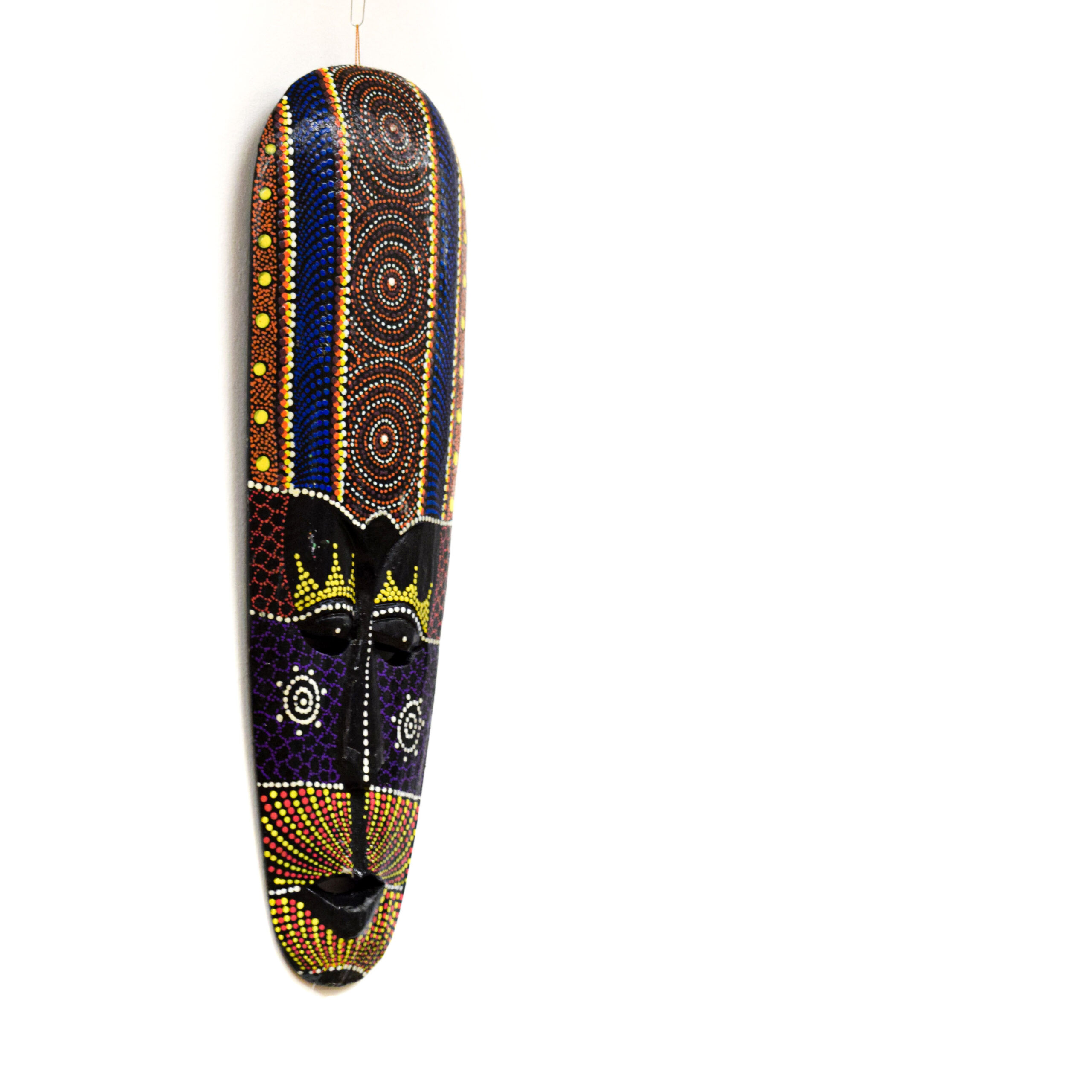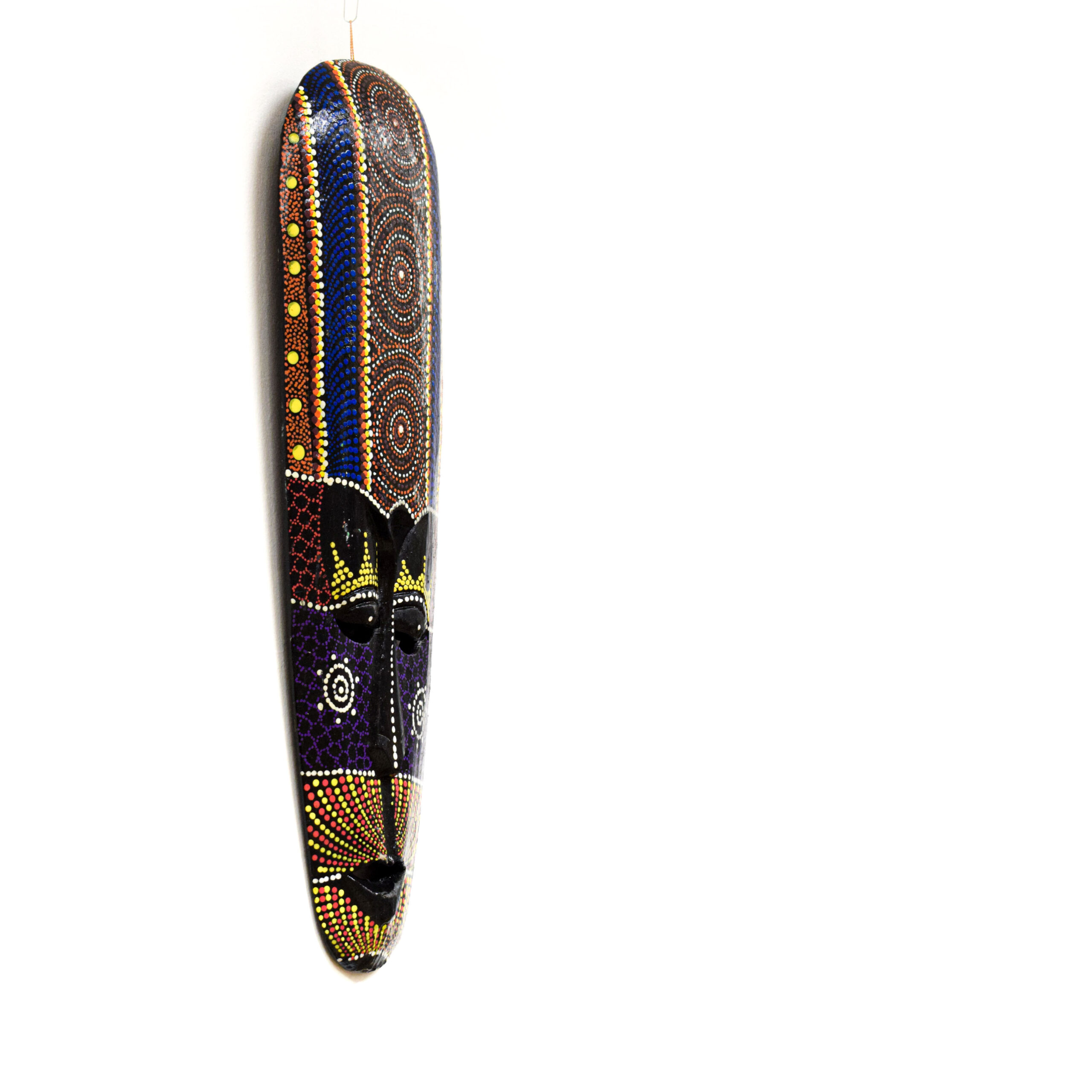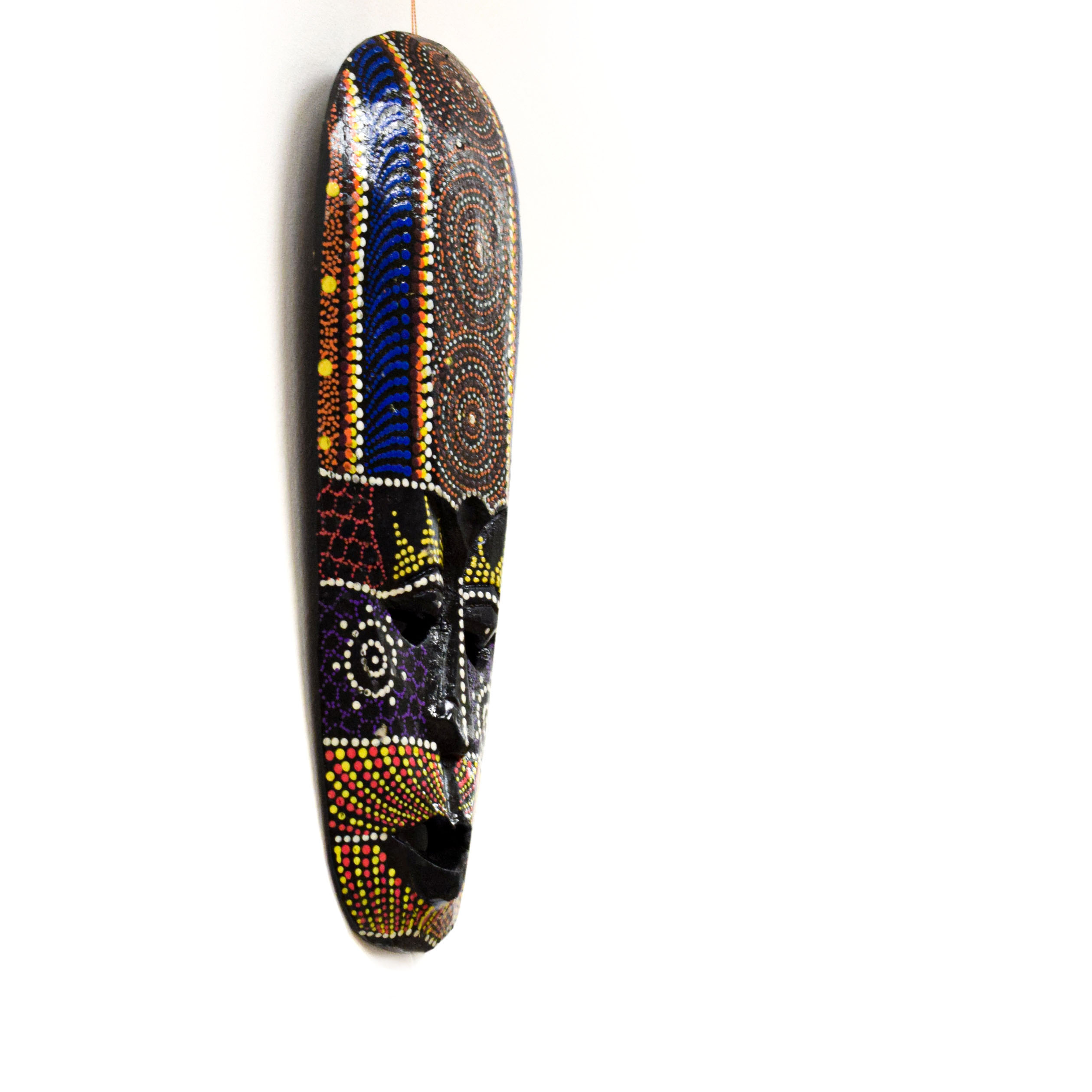 Dobd fel otthonod hangulatát ezzel az egyedülálló, kézzel festett afrikai törzsi maszkkal! A részletgazdag, pontozott festés és az élénk, mégis harmonikus színek a hagyományos afrikai törzsi motívumokat idézik, modern, dekoratív formában.