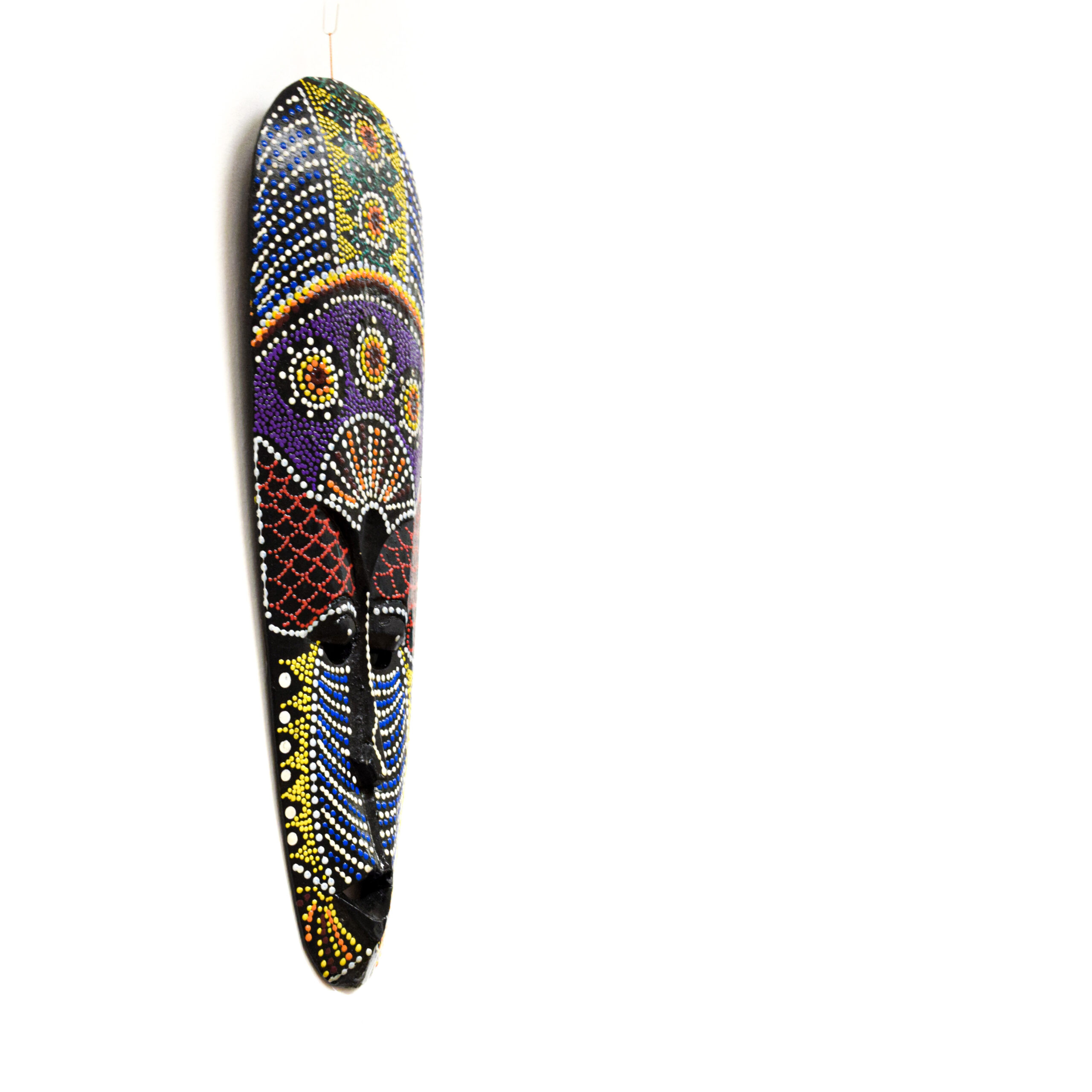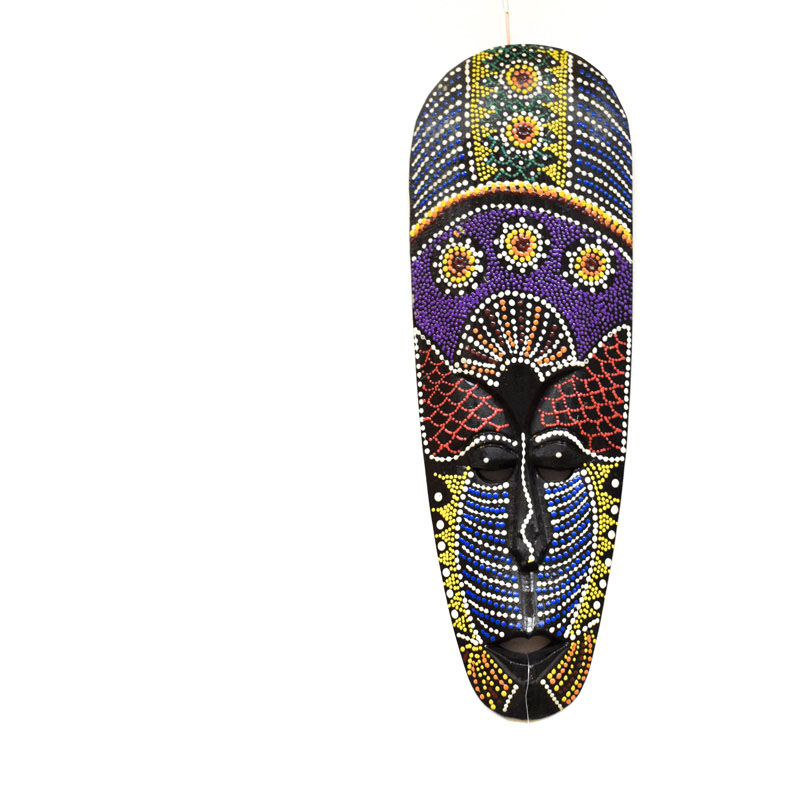 Afrikai törzsi maszk | faragott fa | Lila-kék-zöld-sárga-piros