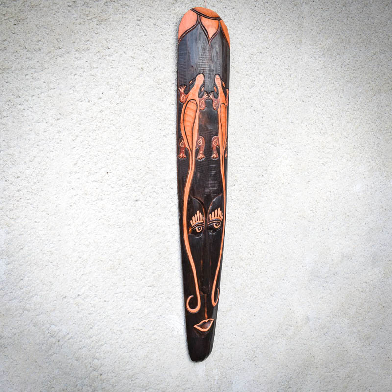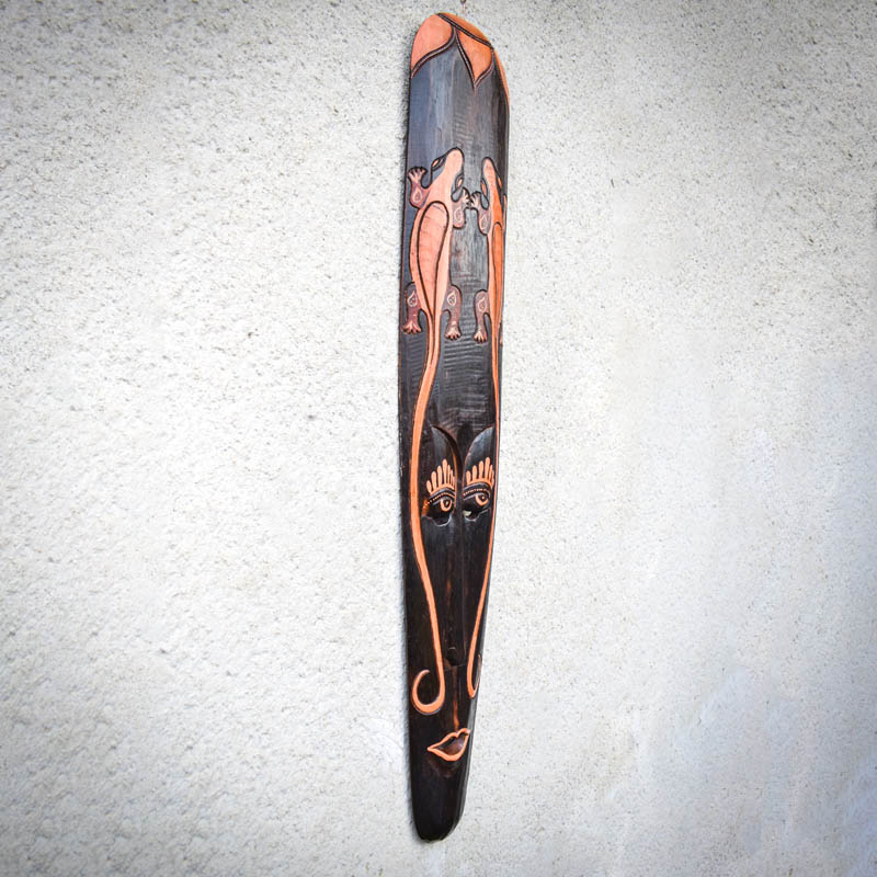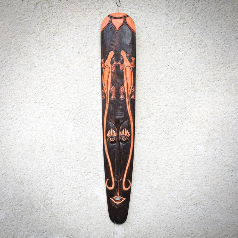Indonéz törzsi maszk | faragott fa | 2 gyík